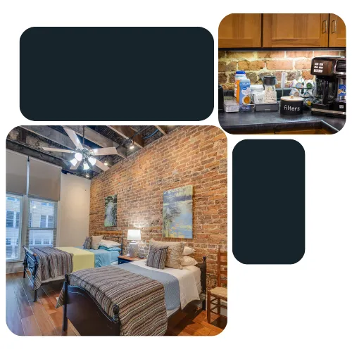 Inside, you’ll find a cozy yet modern space with original beams, exposed brick, and thoughtfully curated comforts. From the plush luxury beds to the fully equipped chef’s kitchen, everything is designed to help you relax, rest, and renew. Whether you're watching Netflix on the HD TV, brewing morning coffee, or enjoying a peaceful night’s sleep with the white noise machine, this loft is built for comfort and charm.